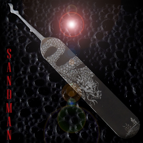 The Sparrows Sandman is a wide handled laser engraved Raking Pick.